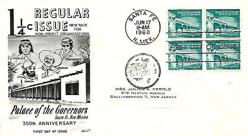 ![]() | Special hand cancellation: "New Mexico Philatelic Association Convention Sta., Santa Fe, N. Mex. NOV 6 1958". |
