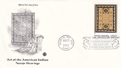 | These six cacheted covers are for the first day of issue of the Art of the American Indian 37 cents postage stamps series. Special machine pictorial & slogan cancellations: "SANTA FE, NM 87501 AUG 21 2004 | ART OF THE AMERICAM INDIAN FIRST DAY OF ISSUE SANTA FE INDIAN MARKET |". |