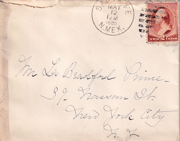 ![]() | Hand cancellation: "SANTA FE, N.MEX. OCT 2 1885". [TPC] (L. Bradford Prince served as chief justice of the New Mexico Territorial Supreme Court from 1878 to 1882, and as the 14th Governor of New Mexico Territory from 1889 to 1893.) |