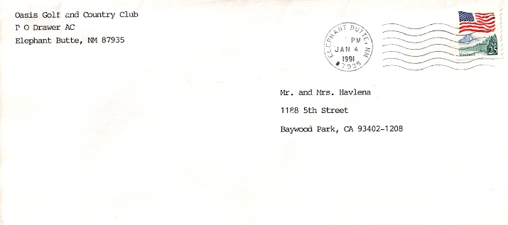 | Machine cancellation: "ELEPHANT BUTTE, NM 87935 JAN 4 1991". |