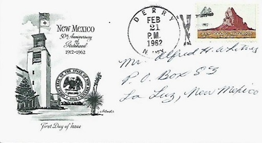 | Hand cancellation: "DERRY, N. MEX. FEB 21 1962". |