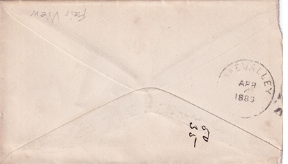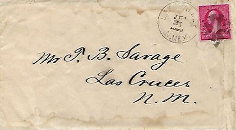 | Hand cancellation with cork killer on back: "LAKE VALLEY, N.MEX. APR 4 1889". [TPC] |
