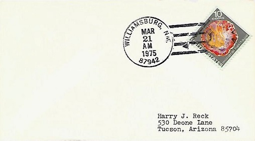 | Hand cancellation: "WILLIAMSBURG, NM 87942 MAR 21 1975". |