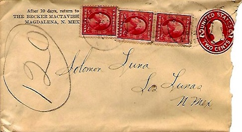 | Hand cancellation: "MAGDALENA, N. MEX. JAN 21 1912". |