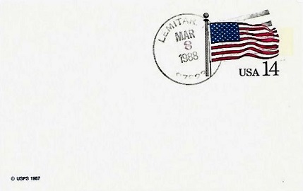 | Two different hand cancellations: on front "LEMITAR, NM 87823 MAR 8 1988", and on back "LEMITAR, NM USPO MAR 8 1988". |