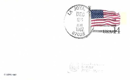 | Hand cancellation on front & back: "LA JOYA, NM 87028 DEC 26 1987". |