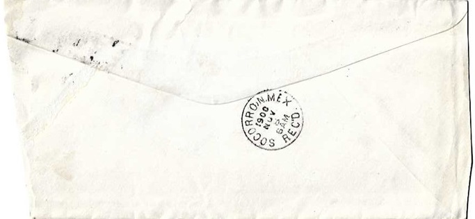 | Hand cancellation on back: "REC'D., SOCORRO, N.MEX. DEC 5 1906". [TPC] |