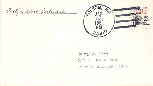 | Hand cancellation: "FOLSOM, NM 88419 JAN 25 1982". |