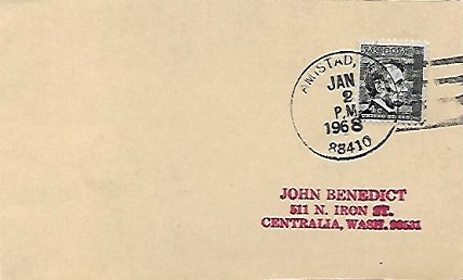 | Hand cancellation: "AMISTAD, NM 88410 JAN 2 1968". |
