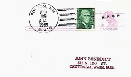 | Hand cancellation: "FOLSOM, NM 88419 APR 18 1969". |