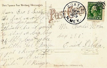 | Hand cancellation: "CUATES, N.MEX. SEP 20 1912". |