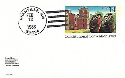 | Hand cancellation: "GRENVILLE, NM 88424 FEB 12 1988". |