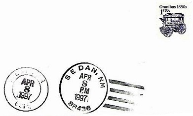 | Two different hand cancellations: "SEDAN, NM 88436 APR 8 1997", and "SEDAN, NM USPS APR 8 1997". |