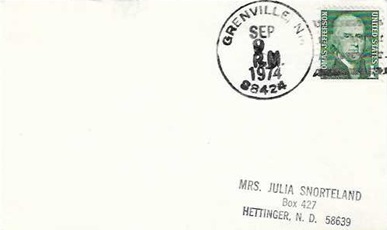| Hand cancellation: "GRENVILLE, NM 88424 SEP 9 1974". |