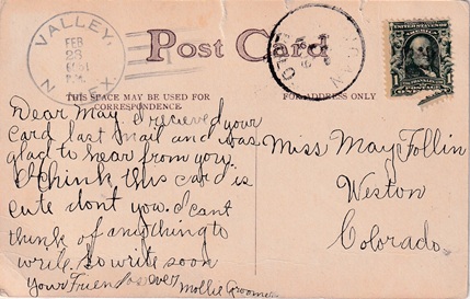 Doane hand cancellation: "VALLEY, N. MEX. FEB 28 1909 | 1 |". [TPC]