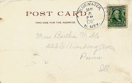 ![]() | Doane hand cancellation: "BLUEWATER, N. MEX. JAN 5 1907 | 1 |". [TPC] |