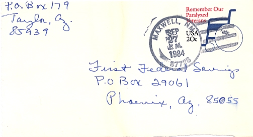 | Hand cancellation: "MAXWELL, NM 87728 SEP 27 1984". |