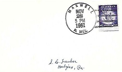 | Hand cancellation: "MAXWELL, N. MEX. NOV 28 1961". |