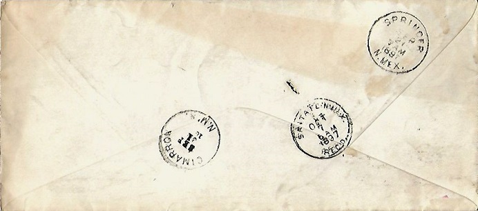 | Hand cancellation on back: "SPRINGER, N.MEX. SEP 21 1897". [TPC] |