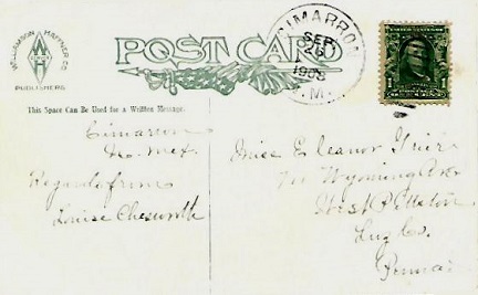 | Hand cancellation: "CIMARRON, N.M. SEP 26 1908". [TPC] |