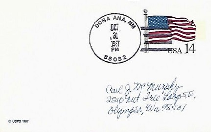 | Hand cancellation: "DONA ANA, NM 88032 OCT 31 1987". |