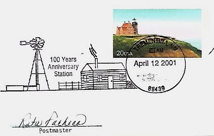 | Special hand pictorial cancellation: "100 Years Anniversary Station, TREMENTINA, NM 88439 APR 12 2001". |