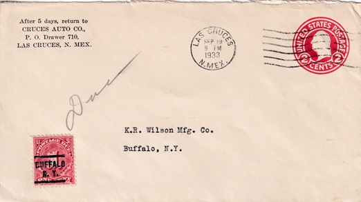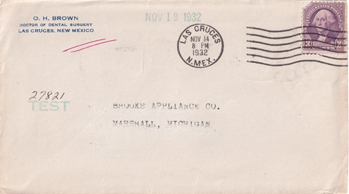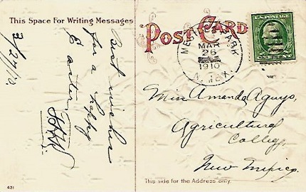 | Hand cancellation: "AGRICULTURAL COLLEGE, N. MEX. SEP 18 1910" [TPC]. |