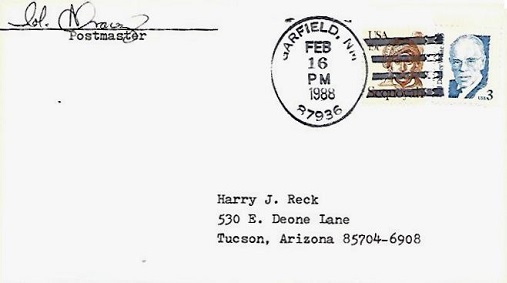 | Machine cancellation: "SUNLAND PARK, NM 88063 FEB 29 1988". |