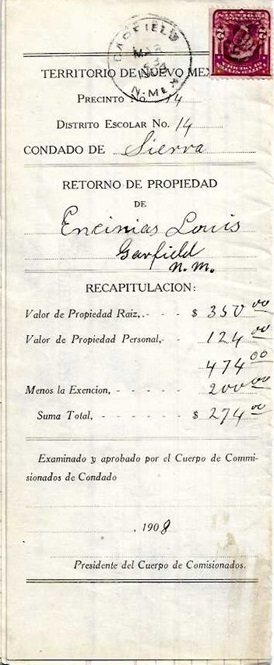 | Hand cancellation on back: "GARFIELD, N. MEX. MAY 11 1904". [TPC] |