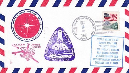 | Hand cancellation: "WHITE SANDS MISSILE RANGE, NM 88002 OCT 18 1989". |