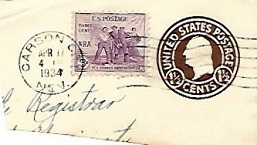 | Machine cancellation on cut piece: "CARSON CITY, NEV. APR 17 1934". |