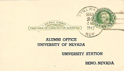 ![]() | Hand cancellation: "STILLWATER, NEV. MAR 24 1947". |