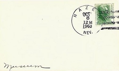![]() | Hand cancellation: "HAZEN, NEV. OCT 6 1963". |