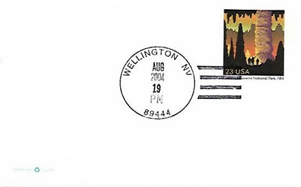 ![]() | Hand cancellation: "WELLINGTON, NV 89444 AUG 19 2004". |
