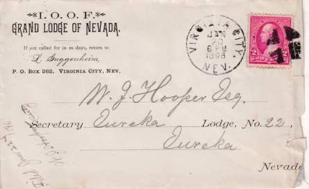 ![]() | Hand cancellation: "VIRGINIA CITY, NEV. FEB 2 1886". |