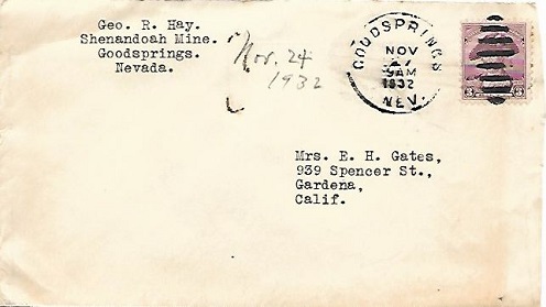 | Hand cancellation: "GOODSPRINGS, NEV. NOV 24 1932". |