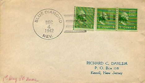 | Hand cancellation: "BLUE DIAMOND, NEV. DEC 4 1942". |