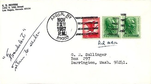| Hand cancellation: "ARDEN, NV 89002 NOV 1 1967". |