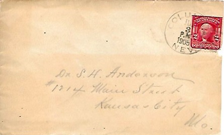 ![]() | Doane hand cancellation: "COLUMBIA, NEV. JUL 3 1905 | 1 |". |