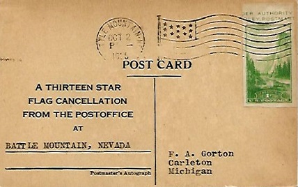![]() | Machine flag cancellation: "BATTLE MOUNTAIN, NEV. OCT 2 1935". |