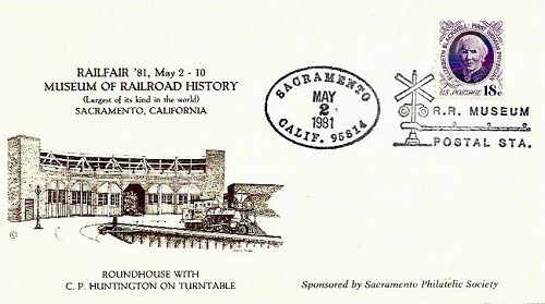 | Special hand pictorial cancellation: "R.R. MUSEUM POSTAL STA., SACRAMENTO, CALIF. 95814 MAY 2 1981". |