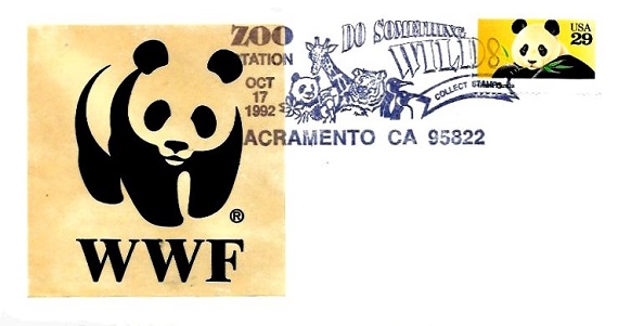 | Special hand pictorial & slogan cancellation: "ZOO STATION, SACRAMENTO, CA 95822 OCT 17 1992 | DO SOMETHING WILD COLLECT STAMPS |". |