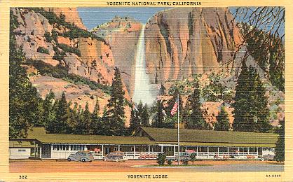 | "Yosemite Lodge". Real photo postcard. Publisher not given. Number 61. Unused. Probably circa 1930s. |